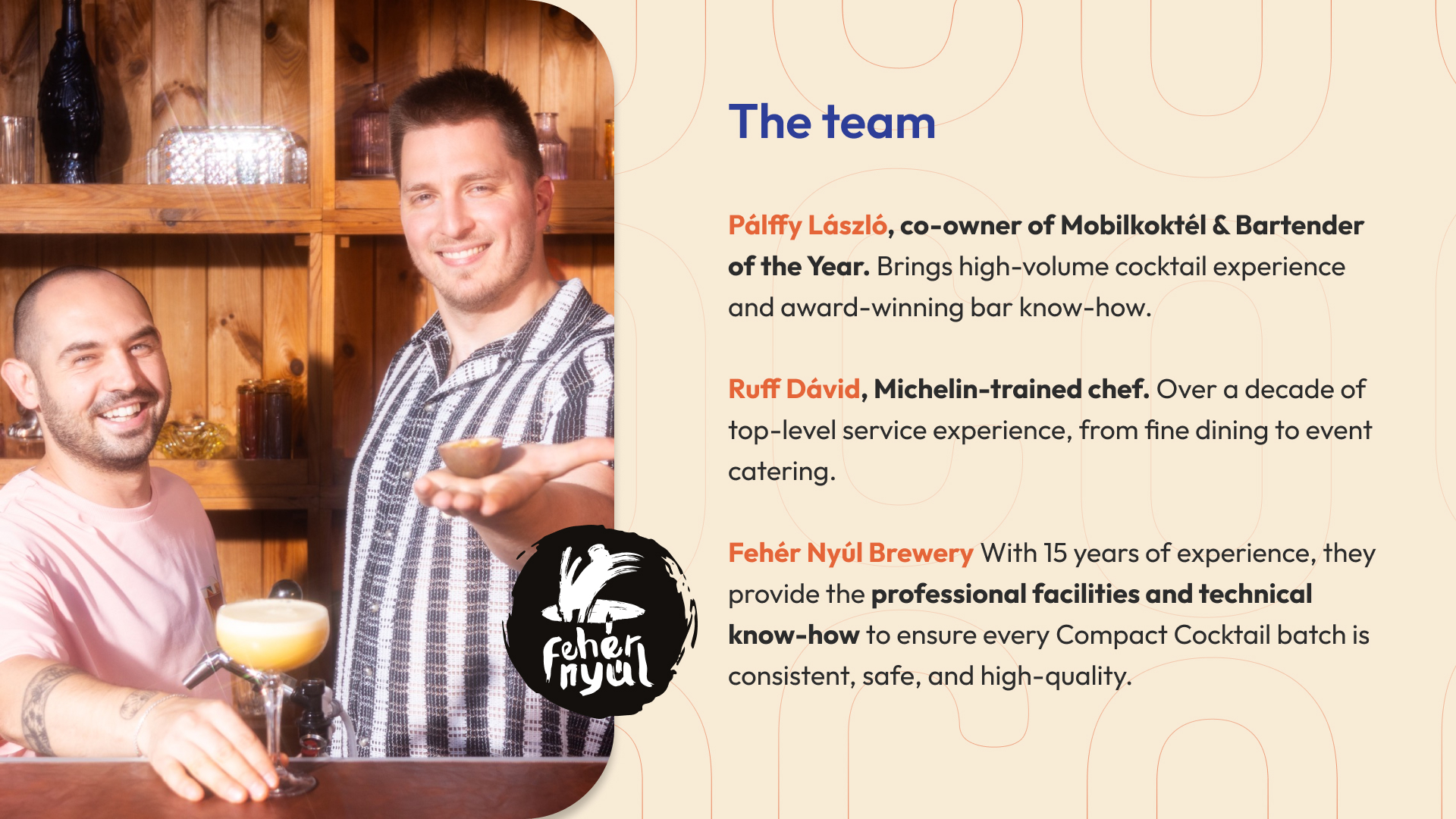 When Dávid and László reached out, they already had the name Compact Cocktail and a clear vision: premium cocktails served on tap. What they needed was help turning that vision into something real.